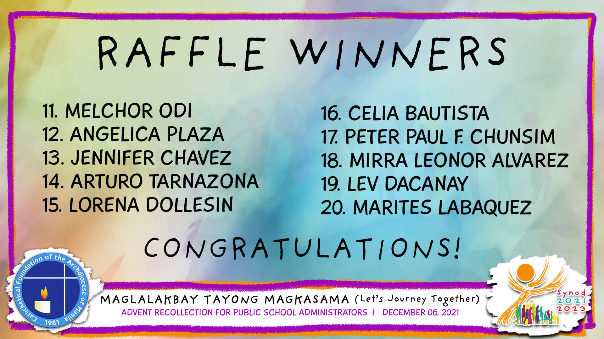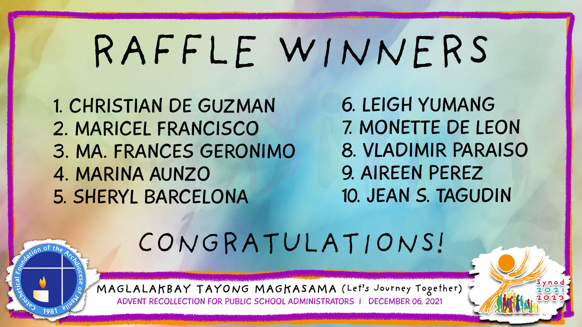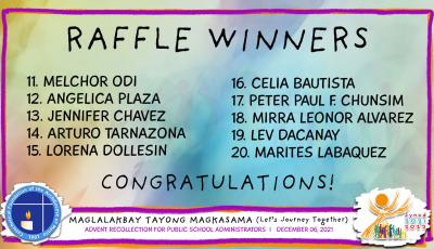 The names of the participants were raffled and the lucky winners received a CFAM-Veritas Digital Catechetical Radio.